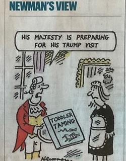 The Sunday Times’ choice of their ‘Newman’s View’ cartoon on page 23 of the Easter Sunday edition spoke volumes about the concern over Trump's erratic behaviour. ‘Throwing toys out of the pram’ is understandable among small children but, by the time someone is aged nearly 80 (Donald Trump's birthday is on 14th June) — or indeed a quarter of that age — you really do expect to see more measured decision-taking.